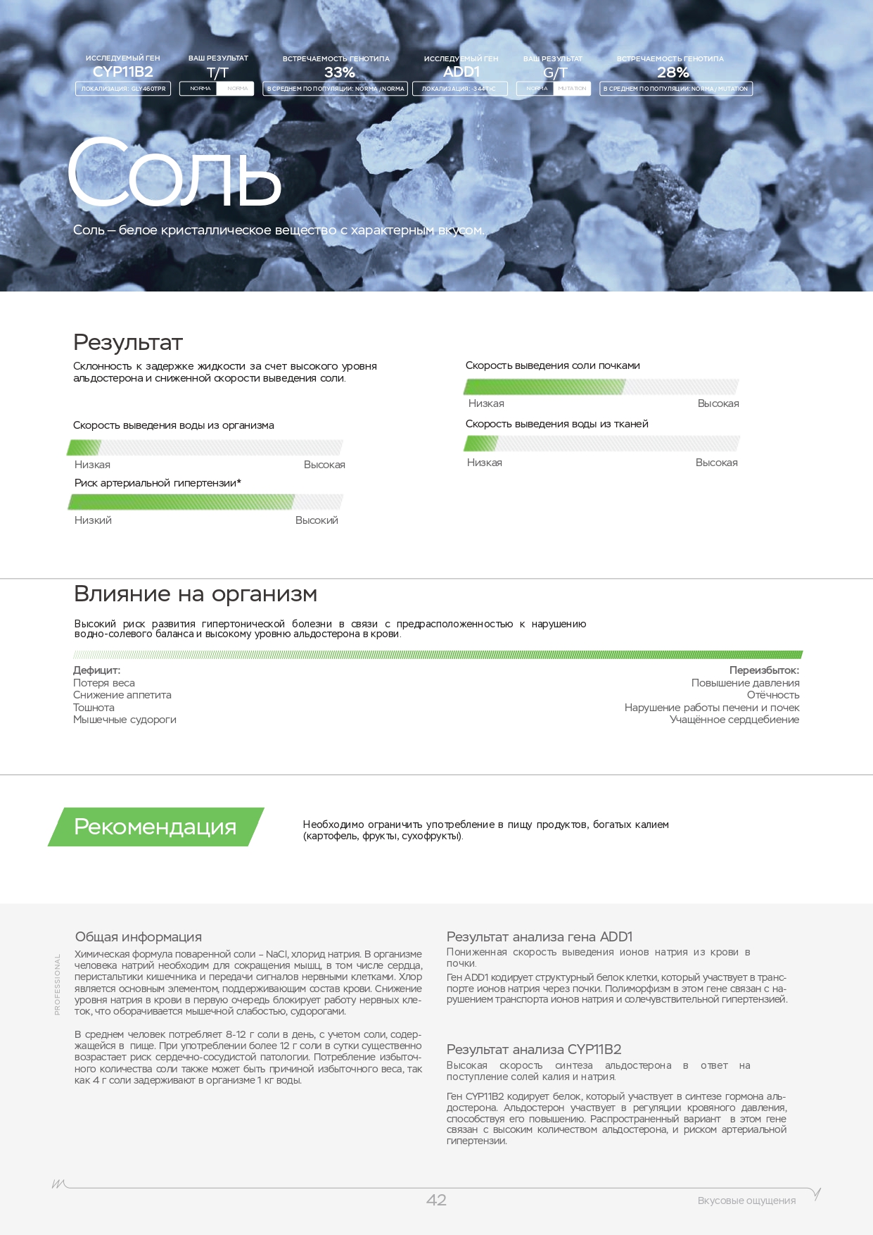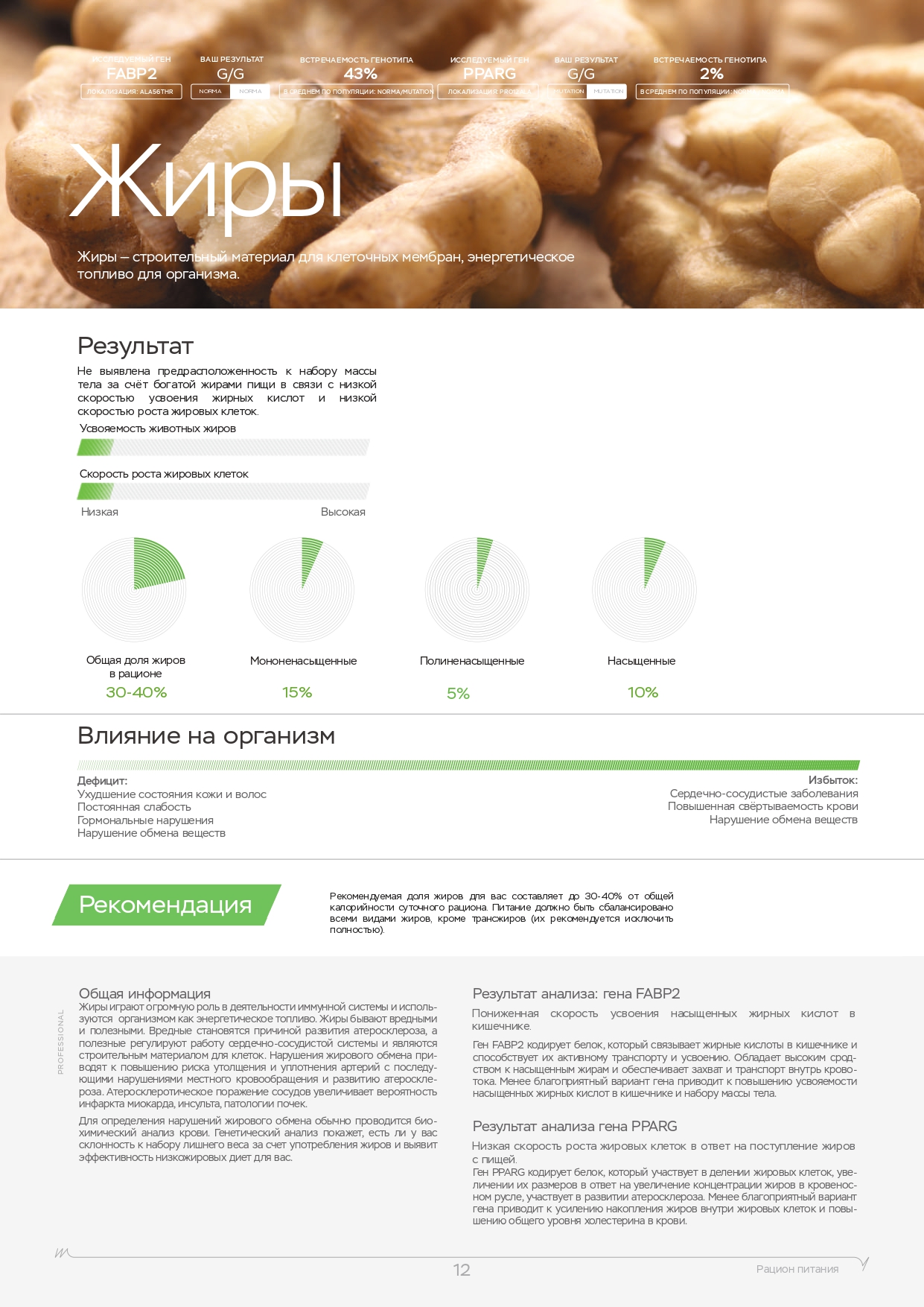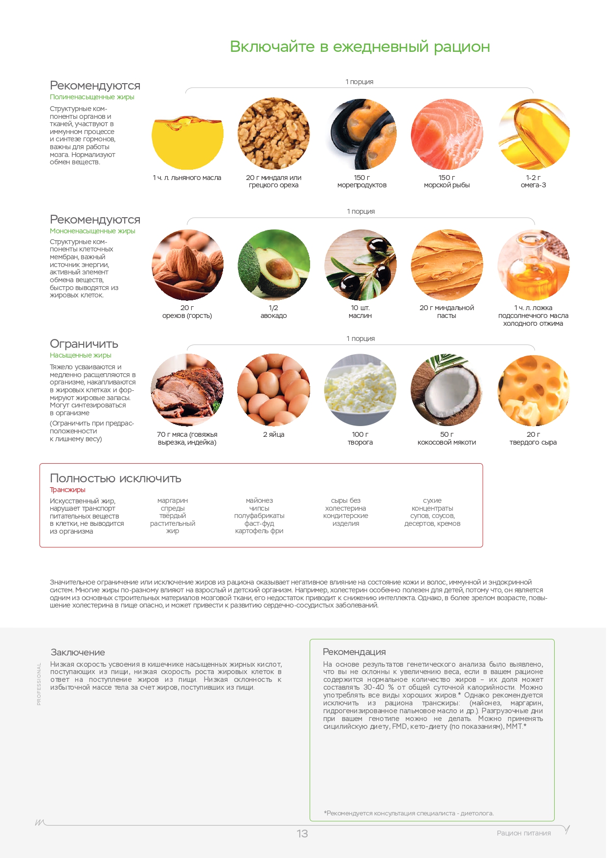 Помните, что помимо физических нагрузок, большую роль играет питание. Вы также можете пройти ДНК-тест на диету, который покажет, каких веществ не хватает в организме, какие организм усваивает лучше, а какие хуже и многое другое.